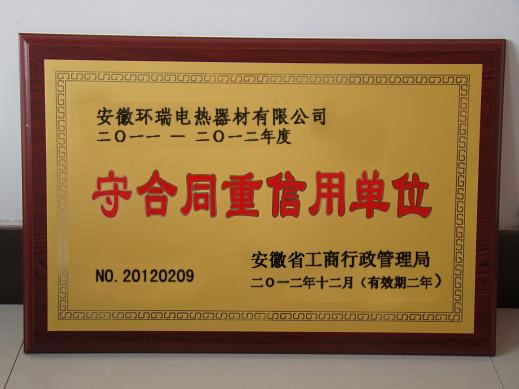 誠(chéng)信是企業(yè)可持續(xù)發(fā)展的基石。十多年來(lái),安徽環(huán)瑞電熱器材有限公司始終秉承“以人為本,以顧客為中心”的核心價(jià)值觀,恪守誠(chéng)信經(jīng)營(yíng)的理念,嚴(yán)格執(zhí)行《合同法》、《公司法》等法律法規(guī),不斷強(qiáng)化合同管理,完善合同管理制度,從根本上保證合同管理和履行的規(guī)范性。同時(shí),大力開(kāi)展創(chuàng)造“守合同重信用”企業(yè)活動(dòng),營(yíng)造“守合同重信用”的良好氛圍,提高全體職工“守合同重信用”的自覺(jué)性和法制觀念,使企業(yè)合同管理不斷走向制度化、規(guī)范化、標(biāo)準(zhǔn)化。2011-2012年公司合同履行率100%。無(wú)任何違法、違約、違規(guī)及合同糾紛等不良行為,各合作單位對(duì)安徽環(huán)瑞的合同履行情況也都給予了高度評(píng)價(jià)。