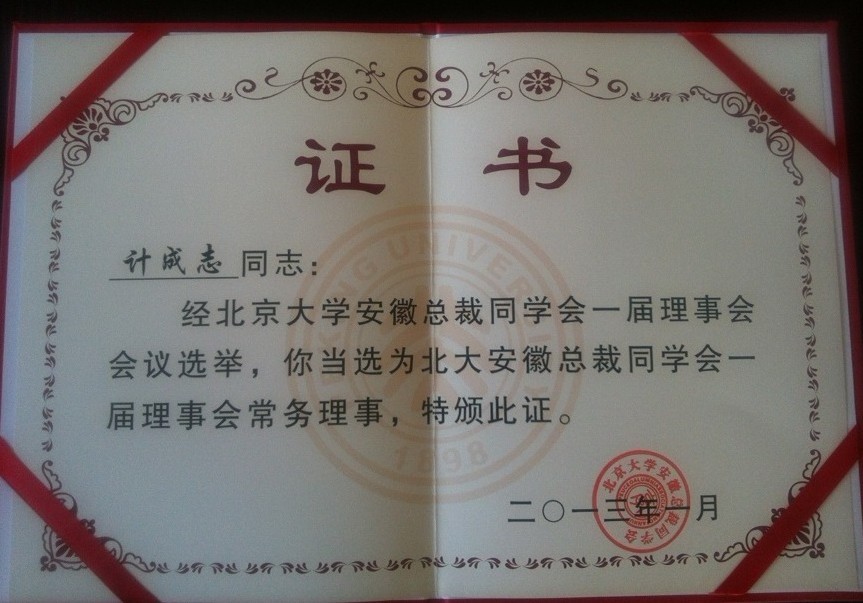 安徽環(huán)瑞總經(jīng)理計成志先生予2012年順利取得北京大學EMBA高級管理碩士學位,在2013年4月參加了一屆一次的安徽總裁同學會常務(wù)理事會。