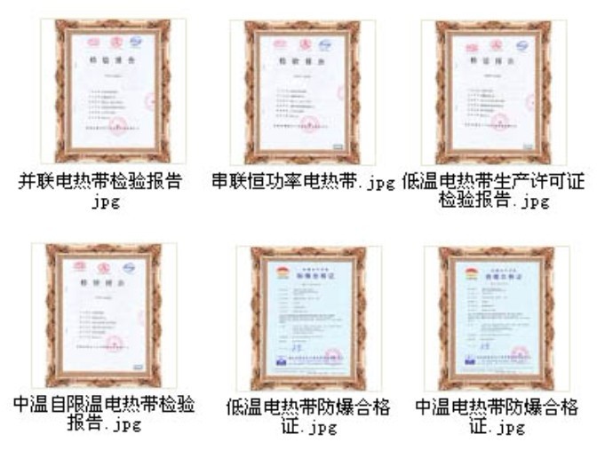 此外,我司針對石油、消防、電廠、天溝融雪、混凝土養(yǎng)護、汗蒸房等行業(yè)專用研發(fā)的電伴熱帶產(chǎn)品獲得了國家十三項專利證書.是全國電伴熱行業(yè)中產(chǎn)品資質(zhì)最為全面的國家高新技術(shù)企業(yè),專業(yè)的電伴熱生產(chǎn)廠家。以上證書詳細見我司官網(wǎng)資質(zhì)中心。